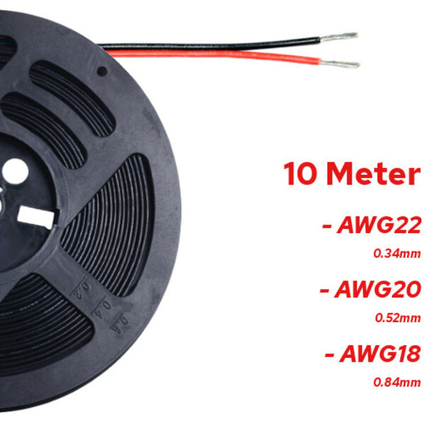 10 Meter Stroomdraad 2 aderig Rood / Zwart