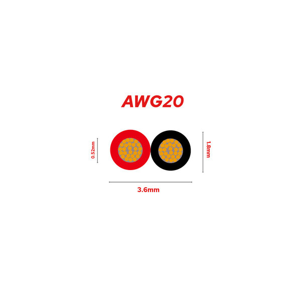 10 Meter 2 aderige stroomkabel op rol. De gewenste draaddikte (AWG) is te kiezen in het pulldownmenu.