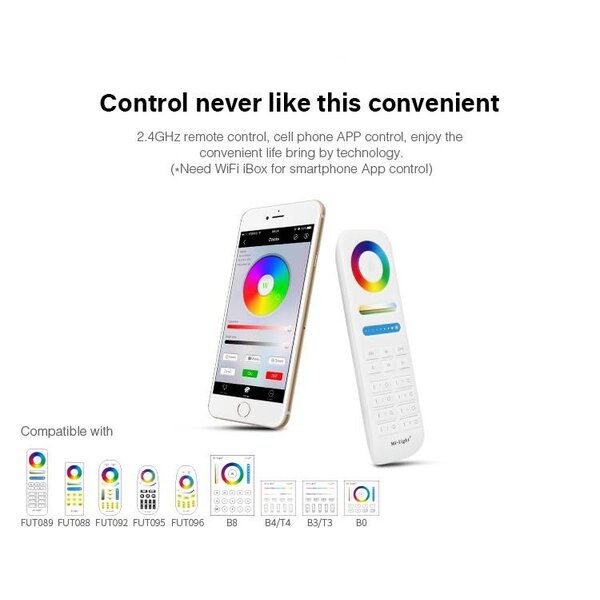 De bouwlamp kan op twee manieren bediend worden, door middel van een afstandsbediening of door middel van een app op uw smartphone of tablet. Kies voor de door u gewenste manier van bedienen door in het menu aan de rechterzijde een 1-zone of 8 zone afstandsbediening te selecteren of kies voor de wifi hub van Mi-Light om zo bediening via smartphone of tablet mogelijk te maken.