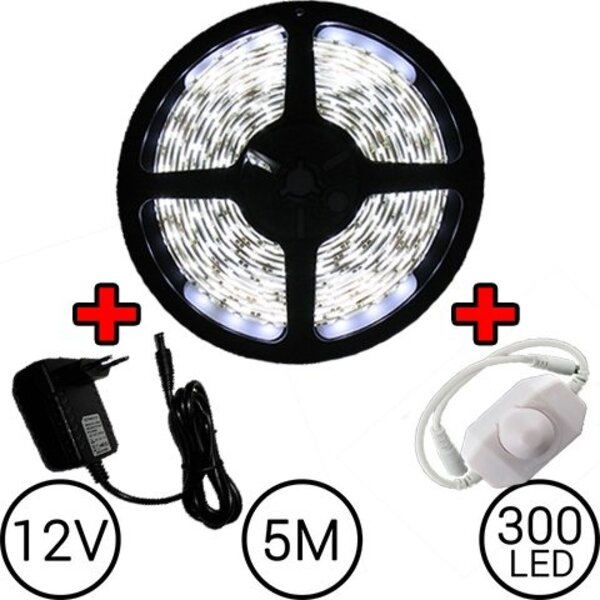 5 meter LED Strip Set Koud Wit Compleet met Dimmer
