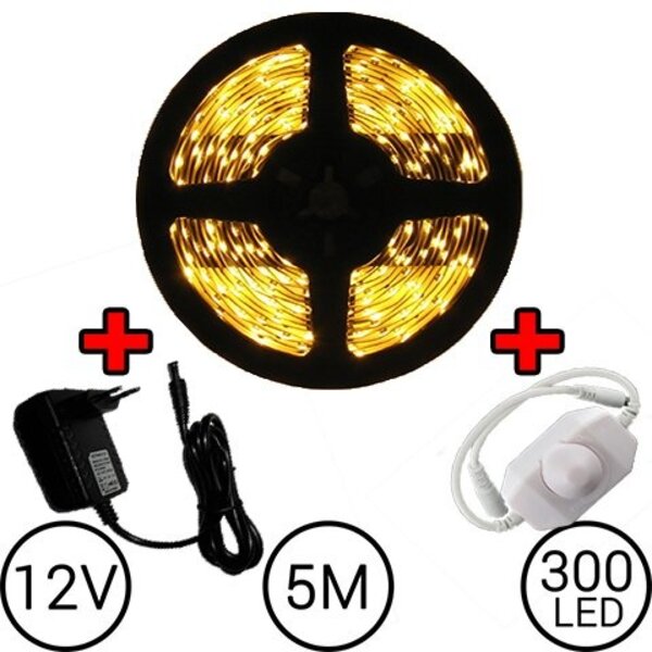 Complete 5 meter LED Strip Set Warm Wit met dimmer
