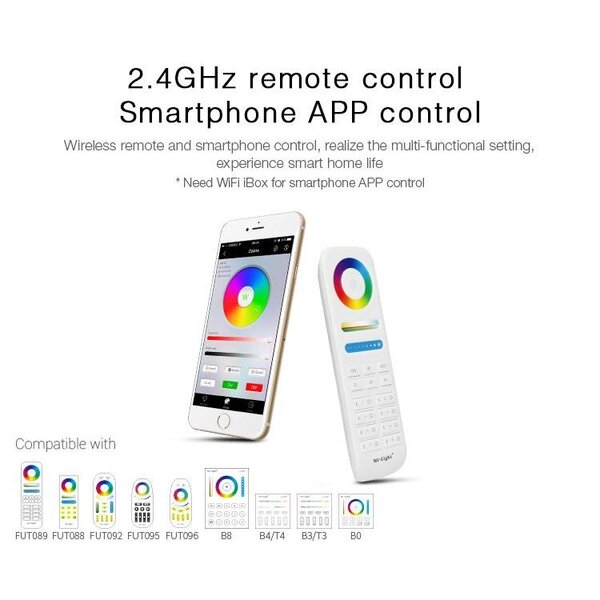 U kunt door middel van deze RGB+CCT afstandsbediening 16 miljoen kleuren creëren en transformeren. De kleur, kleurtemperatuur, verzadiging en helderheid ligt vanaf nu in uw handen. Met de kleurencirkel kunt u de gewenste kleur kiezen en met de “saturation control” de verzadiging van de kleur. Wilt u de helderheid van de RGB + CCT LED-lamp aanpassen? Dan kunt u het licht dimmen met de “Brightness Dimming” toets. Door op “M” (Mode) te klikken, kunt u verschillende kleurprogramma’s kiezen. Met “S” kunt u de snelheid van het kleurprogramma instellen.