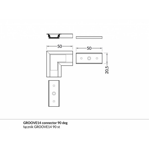 Het is ook mogelijk om twee profielen in een hoek van 90 graden met elkaar te verbinden met een 90 graden hoek connector voor dit inbouw profiel.