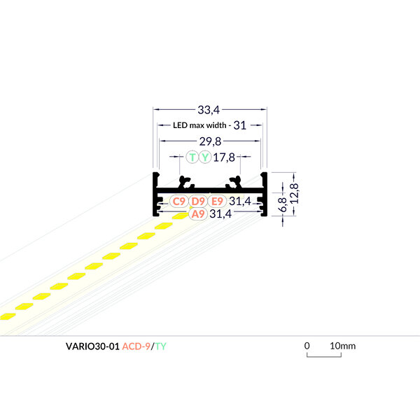 Aluminium Opbouw Profiel Plat 2 meter VARIO30-01