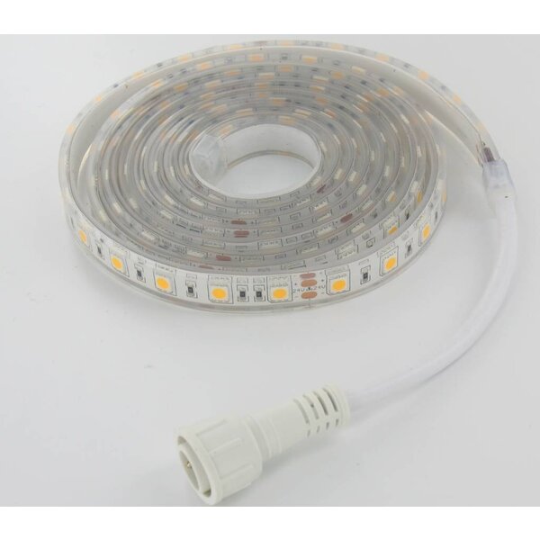 De waterdichte aansluiting die vooraf aan de ledstrip is gemonteerd heeft een lengte van ca. 15cm. Via onderstaande link kunt u kiezen uit verlengkabels van 50cm tot en met 250cm.