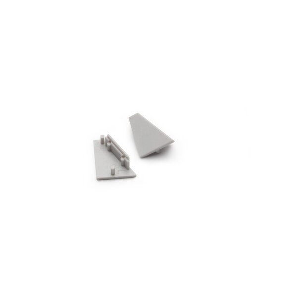 Grijze einddoppen voor Topmet Corner14 Profielen. Beschikbaar in de variant met draaddoorvoer en een gesloten variant.