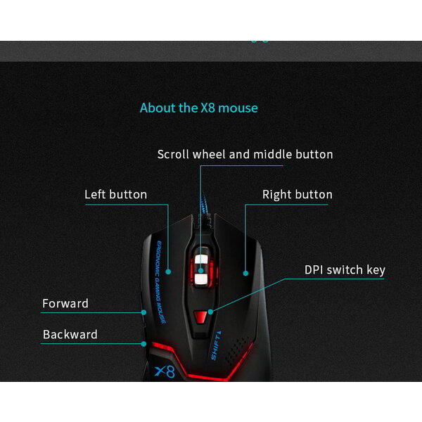 Til je game-ervaring naar een hoger niveau met deze gave gamemuis met LED-verlichting. Deze bedrade gamemuis met 6 knoppen is ideaal voor tijdens het gamen. De zes knoppen passen zich aan ieder soort spel aan en zorgen voor een snelle en gevoelige bediening. Dit zorgt voor de ultieme game-ervaring. De gamemuis beschikt over een linker- en rechtermuisknop, scrollwiel, een DPI knop en twee knoppen om een pagina voor- en achteruit te laten gaan.