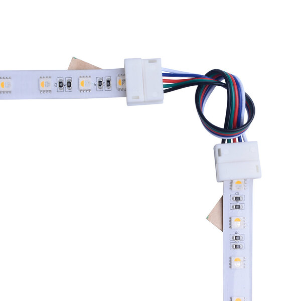 Indien u een RGBW LEDStrip geknipt heeft zit er vaak geen aansluiting meer aan de strip. Wilt u dit stuk aansluiten op een andere RGBW LED Strip? Dan is deze connector de ideale oplossing. Afhankelijk van welke versie u kiest, plaats de strip in de connector op de pinnetjes (IP65 strips met siliconenlaag) of onder de schuifjes (strips zonder siliconenlaag), klik de connector dicht en de connectie is gemaakt! Herhaal dit proces bij de volgende RGBW Strip en de strips zijn met elkaar verbonden. Let op dat de juiste aders op de strips met elkaar verbonden worden (+ op + en de kleuren op de juiste kleuren).