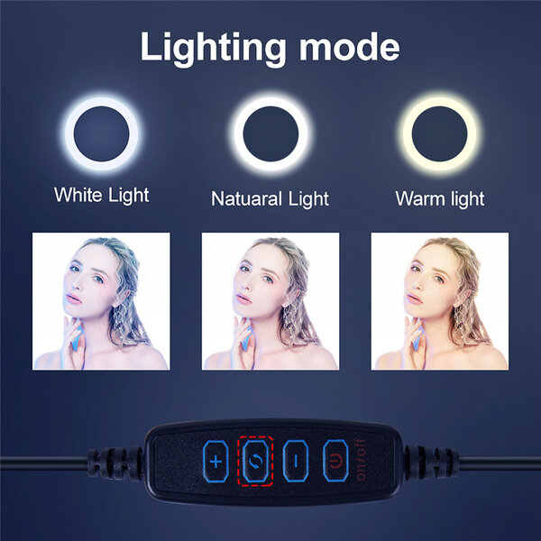 De LED ring lamp met een diameter van 30 centimeter kent maar liefst 3 verschillende lichtstanden. Je kunt de lampen instellen met warm licht, koud licht en natuurlijk warmwit licht. Deze drie standen kunnen weer ingesteld worden op 10 helderheidsniveaus. In totaal zijn er dus 30 verschillende standen. Hierdoor zorg je ervoor dat je niet overbelicht raakt en dat een helderheidsniveau het beste bij jouw gezicht past. De verschillende lichtstanden van de LED ringen zijn simpel in te stellen met de geïntegreerde afstandsbediening in het snoer.
