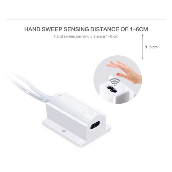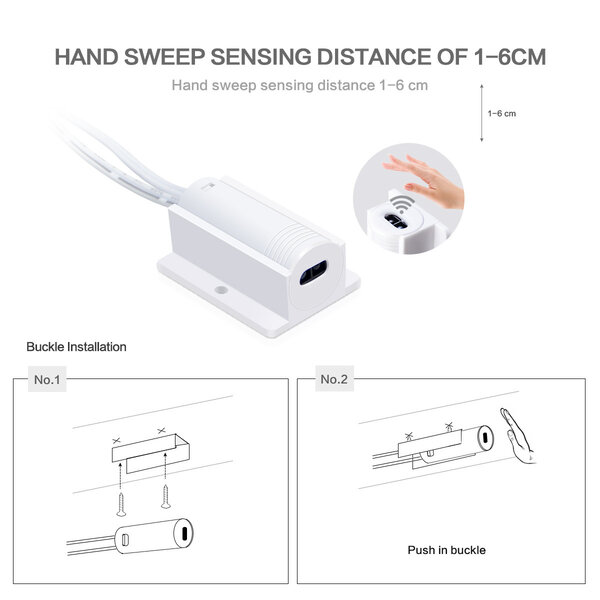 Detectie Afstand: 1 tot 6 cm Met een indrukwekkende detectieafstand van 1 tot 6 cm, reageert deze bewegingssensor op jouw aanwezigheid zonder fysiek contact. Laat de verlichting handig in- en uitschakelen doormiddel van een handgebaar.