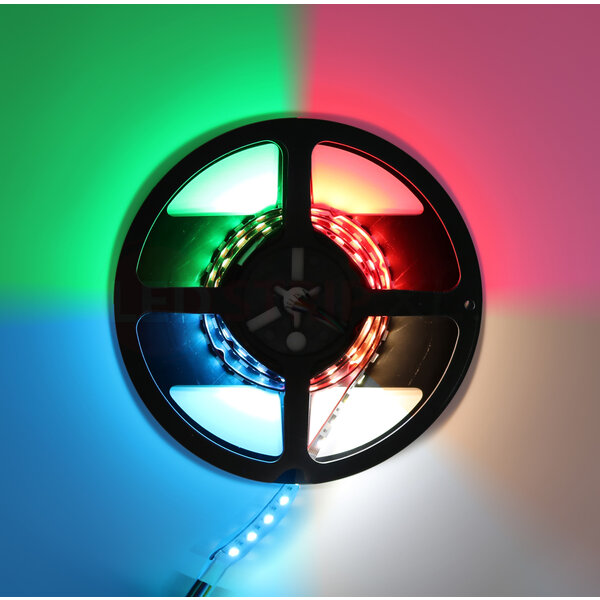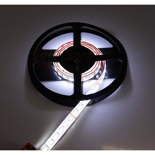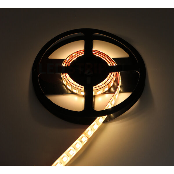 Met deze nieuwe RGB + Dual White ledstrip heeft u de kleurinstelling volledig in eigen hand. U kunt kiezen uit de standaard Rood, Groen, Blauw kleuren en alle tinten die daar tussen vallen. Daarnaast heeft deze 5in1 led ook een Warm witte LED die een kleurtemperatuur van 2800 Kelvin geeft. Aan de andere zijde van de LED zit de Koud Witte LED. Deze heeft een kleurtemperatuur van 6500 Kelvin.