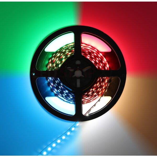 Met deze nieuwe RGB + Dual White ledstrip heeft u de kleurinstelling volledig in eigen hand. U kunt kiezen uit de standaard Rood, Groen, Blauw kleuren en alle tinten die daar tussen vallen. Daarnaast heeft deze 5in1 led ook een Warm witte LED die een kleurtemperatuur van 2800 Kelvin geeft. Aan de andere zijde van de LED zit de Koud Witte LED. Deze heeft een kleurtemperatuur van 6500 Kelvin.