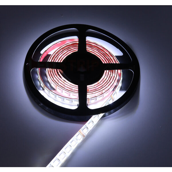 De nieuwste type RGBW ledstrip is RGB+CCT (RGB en Dual White samen in 1 LED). Deze strip van 2.5 meter heeft 84 stuks 5in1 leds per meter. De ledstrip heeft een IP65 siliconen bescherming en werkt op 24 volt.