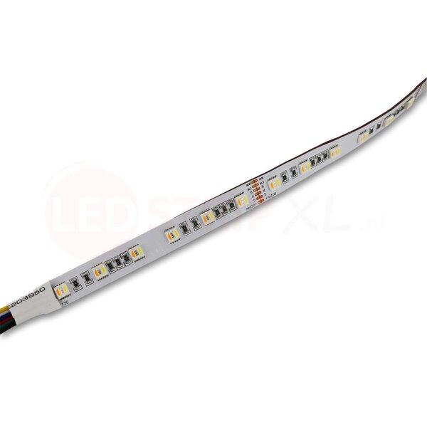 De nieuwste type RGBW ledstrip is RGB+CCT (RGB en Dual White samen in 1 LED). Deze strip van 5 meter heeft 60 stuks 5in1 leds per meter. De ledstrip heeft een IP65 siliconen bescherming en werkt op 24 volt.