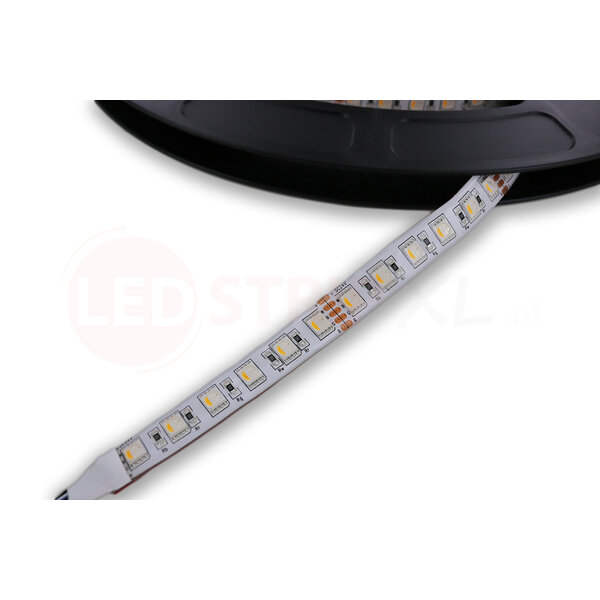 Met de RGBW led strip kunt u de ledstrip zelf op enkel warm wit zetten maar kunt u deze warm witte kleur ook nog weer aanmengen om nóg warmere kleuren te creëren.