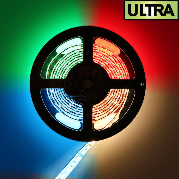 Met deze RGBW LED Strip met 84LED per meter heeft u vrijwel alle beschikbare kleuren tot uw beschikking en heeft u verlichting voor ieder moment van de dag.