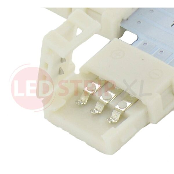 Gebruik deze handig klik connector voor het verlengen van een dual white ledstrip met een pcb breedte van 10mm met 3 aders. Ook kan dit klik koppelstuk gebruikt worden om een afgeknipt stuk ledstrip opnieuw te verbinden met een voeding.