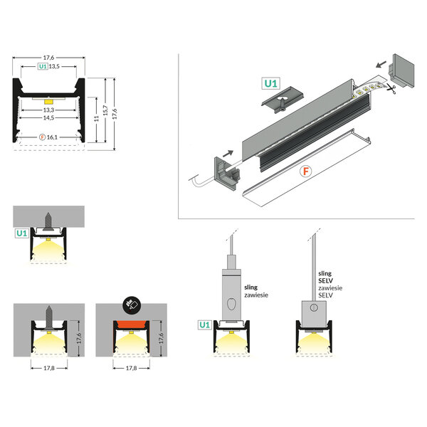 - Geschikt voor opbouw, ophanging en inbouw, voor maximale flexibiliteit in ontwerp en toepassing.