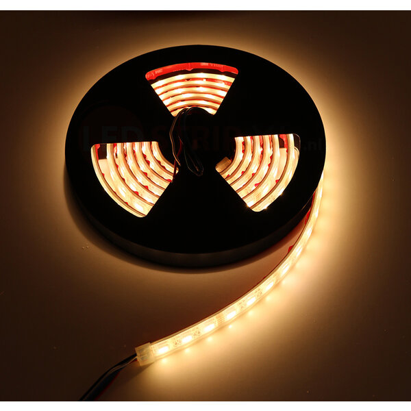 Met de RGBW ledstrip kunt u de ledstrip zelf op enkel warm wit zetten maar kunt u deze warm witte kleur ook nog weer aanmengen om nóg warmere kleuren te creëren.