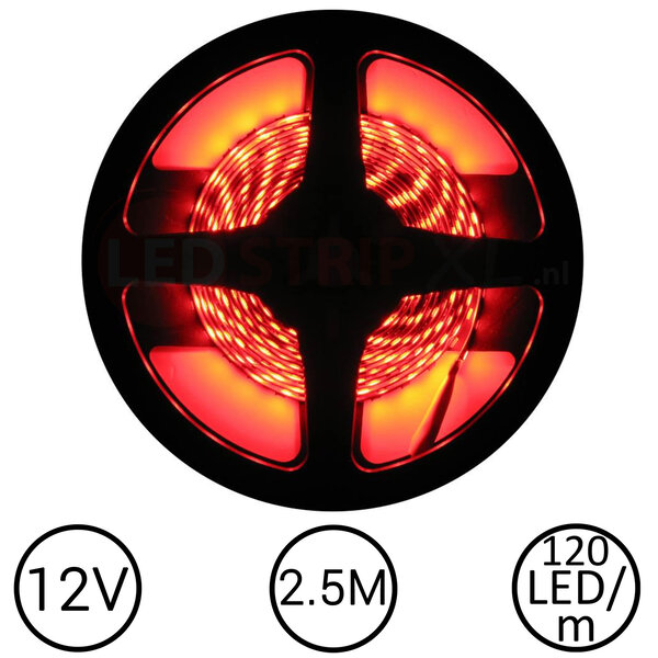 LEDStrip Rood 2,5 Meter 120 LED per meter 12 Volt