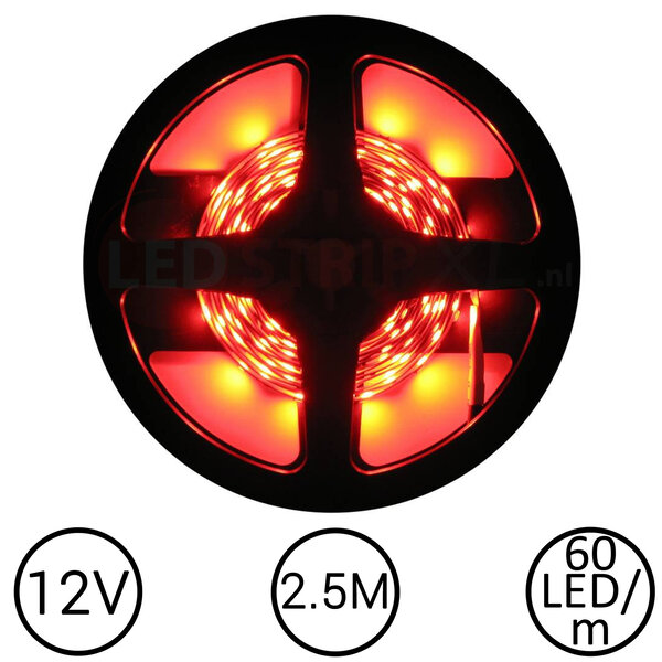 LEDStrip Rood 2,5 Meter 60 LED per meter 12 Volt