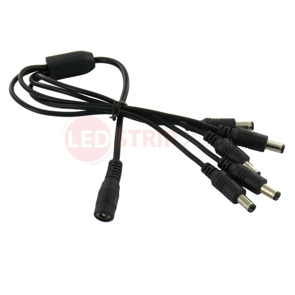 Sluit maar liefst 5 verschillende ledstrips, dimmers of controllers aan op deze splitter kabel. De jack aansluiting past direct op al onze voedingen en enkelkleurige ledstirps. U kunt deze kabel ook gebruiken tussen de voeding en een rgb controller met afstandsbediening.