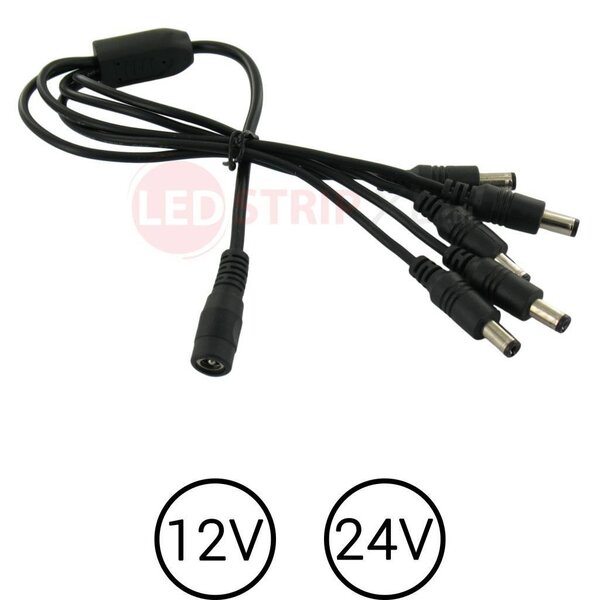 LEDstrip DC voeding splitter 1 x female naar 5x male voor 12 en 24 Volt