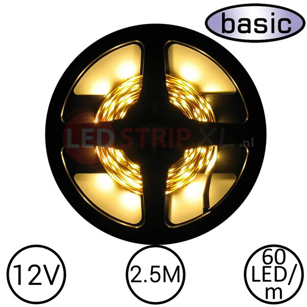 LEDStrip Warm Wit 2.5 Meter 60 LED per meter 12 Volt - Basic