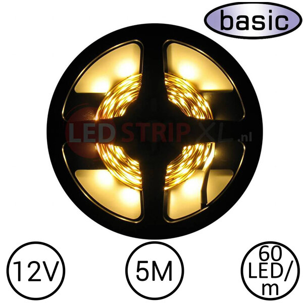 LEDStrip Warm Wit 5 Meter 60 LED per meter 12 Volt - Basic