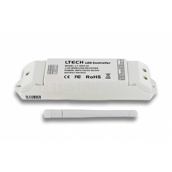 4-kanaals RGBW controller/versterker. Maximaal 5A per kanaal, 20A totaal.