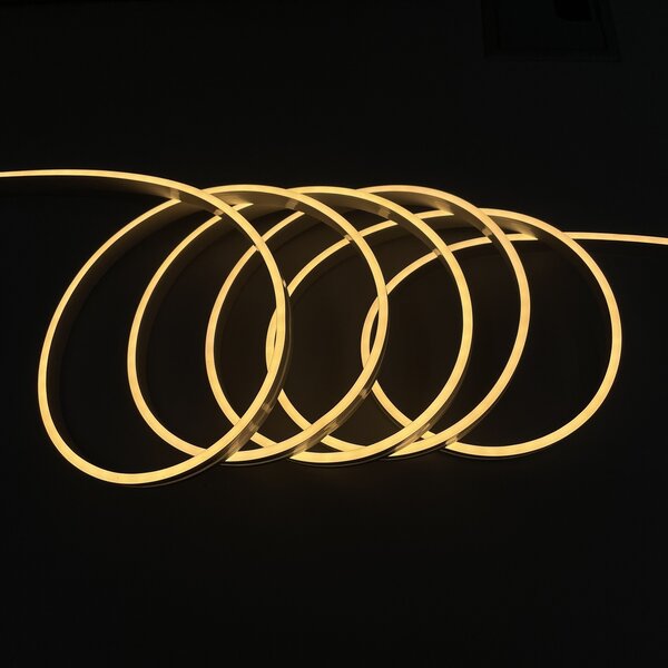 Flexibele Neon LED Slang waarbij het licht naar boven schijnt. Kleur: Warm wit (3000K). IP67 waterdicht. Zijwaarts te buigen in alle richtingen. werkt op 24V