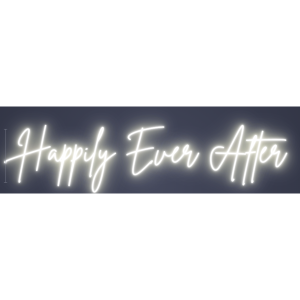 Geef je bruiloft een extra dimensie met een Neon logo van LED in de letters ‘happily ever after’. Het kan natuurlijk ook voor thuis worden aangeschaft om jullie huis samen een extra romantisch tintje te geven. De kleur van het logo is warm wit wat zowel voor de puurheid van het huwelijk staat als een sfeervolle en aangename gloed geeft in de trouwzaal of natuurlijk gewoon thuis aan de muur. De afmetingen van het neon logo zijn 100cm breed en 27cm hoog. Het logo wordt op maat gemaakt dat betekend dat op het moment dat je de bestelling plaatst, wij direct aan de slag gaan om het logo te laten vervaardigen. Wil je een ander model, vorm of misschien een RGB (multikleur) uitvoering van dit logo bestellen? Bekijk hier de custom neon sign pagina of neem contact met ons op voor alle mogelijkheden.
