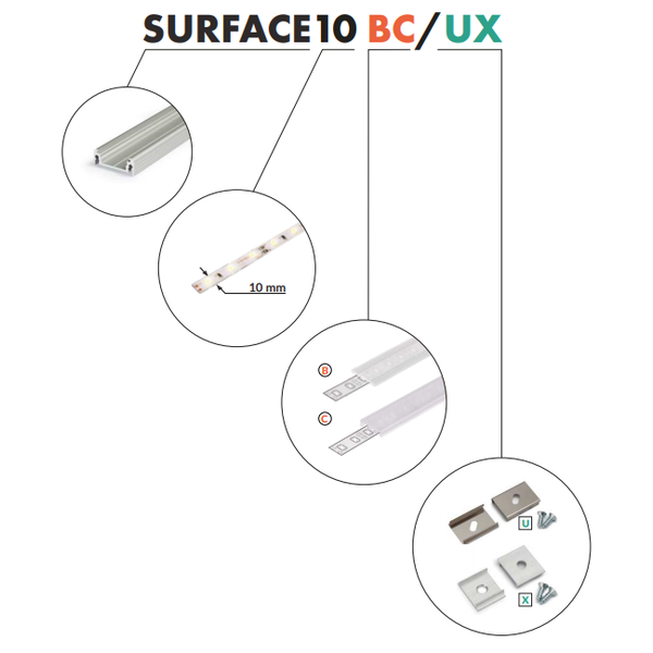 Opbouw Profiel 1 Meter 10mm SURFACE10