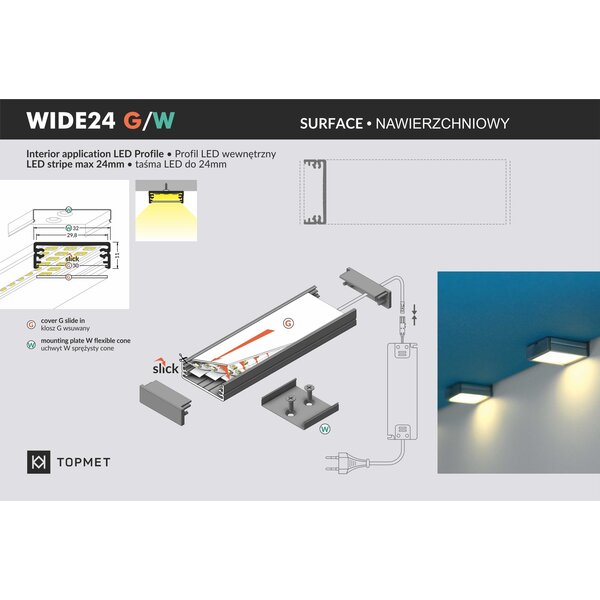 Topmet Opbouw Profiel 1 Meter WIDE24