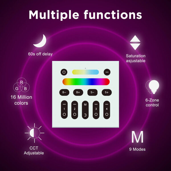 Het wandpaneel van GLEDOPTO maakt het mogelijk om de alle PRO en PLUS controllers en lampen van GLEDOPTO te bedienen via een RF signaal.