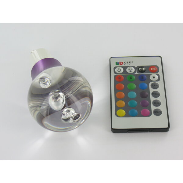 RGB 3 Watt LED 'bal' Lamp GU10 met IR Afstandsbediening