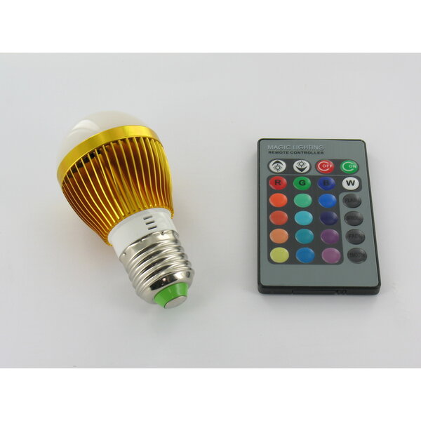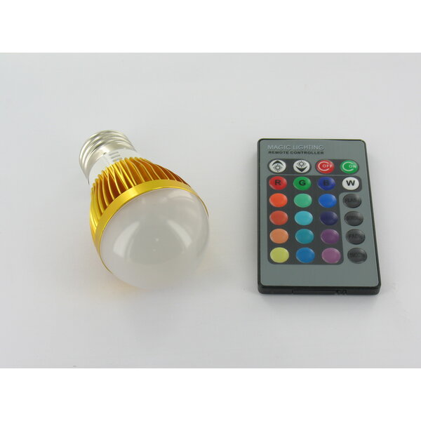 RGB 3 Watt LED 'Bulb' Lamp E27 met IR Afstandsbediening