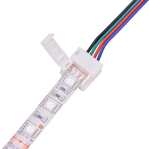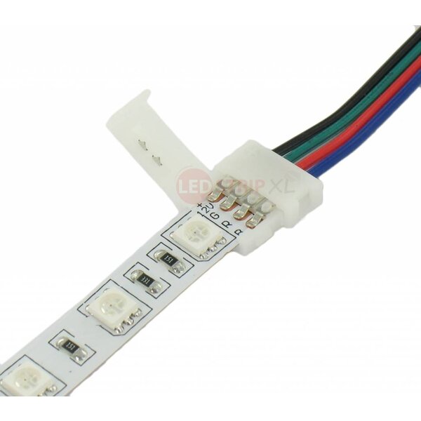Geschikt voor 4 kanaals RGB LED strip verbindingen. (kleur volgorde +GRB). Vervolgens kunt u de strip direct aansluiten op bijvoorbeeld onze RF controller of RGB versterker.