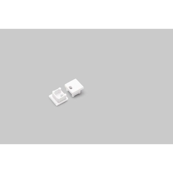 Witte einddoppen voor Smart10 profielen van Topmet. Beschikbaar in de variant met draaddoorvoer en een dichte variant.
