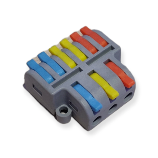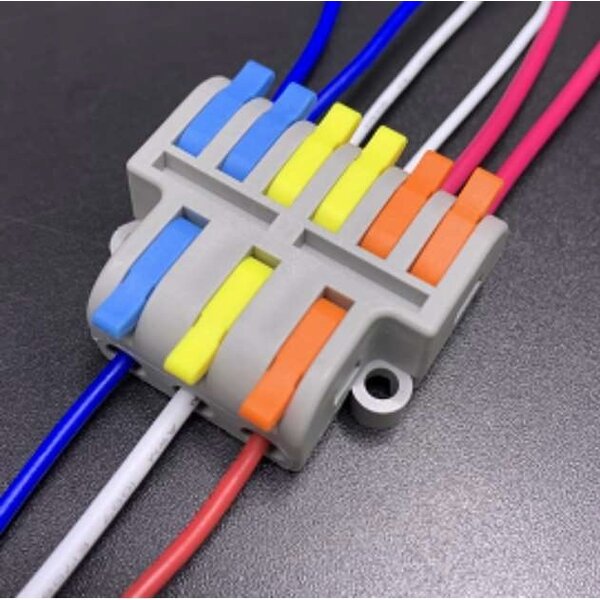 Met deze connector verbind je 3 aderig stroomdraad door naar 2 extra stroompunten. Door het gebruik van deze multi splitter heb je niet langer 2 aparte WAGO klemmen nodig.