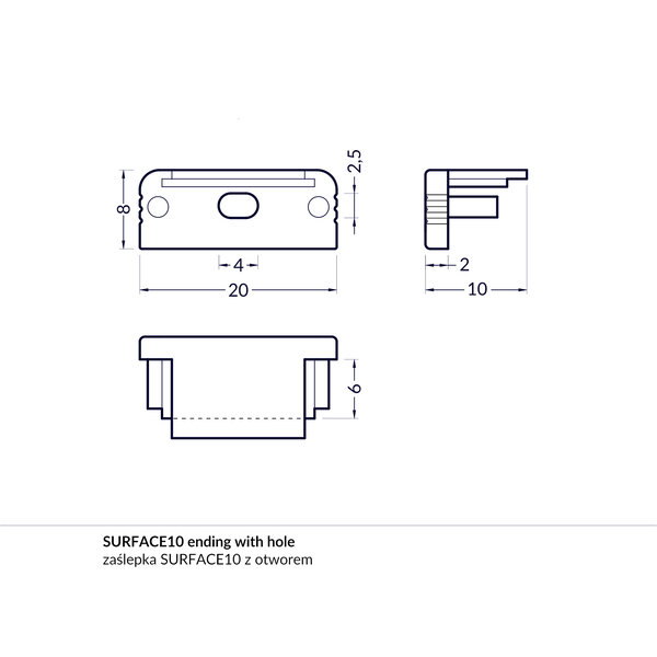 Witte einddoppen voor het Topmet Surface10 LED profiel. Beschikbaar in een open variant om draad door te voeren en een dichte variant voor het einde van het profiel.