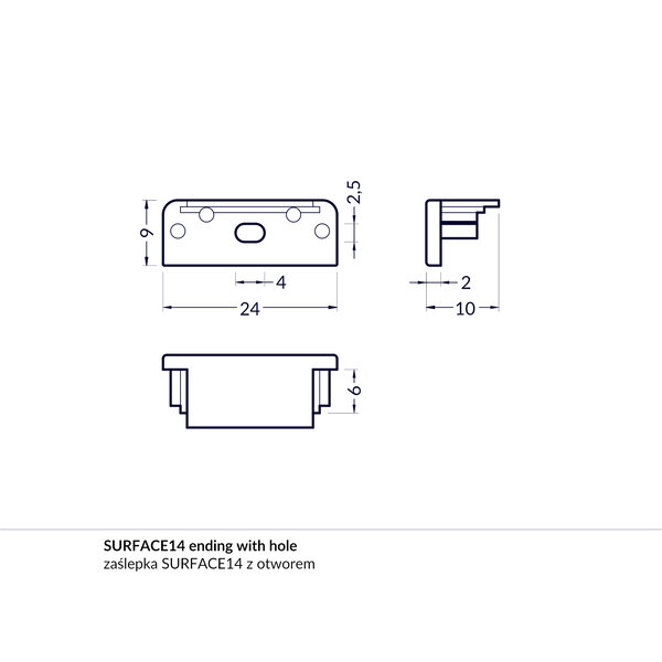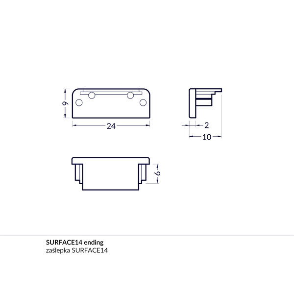 Witte einddop voor Surface14 Profielen van Topmet. Beschikbaar in de variant met draad doorvoer en een gesloten variant.
