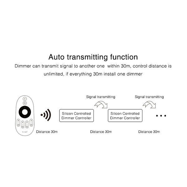 De dimmer kan draadloos aangestuurd worden met de onderstaande MiBoxer afstandsbedieningen.