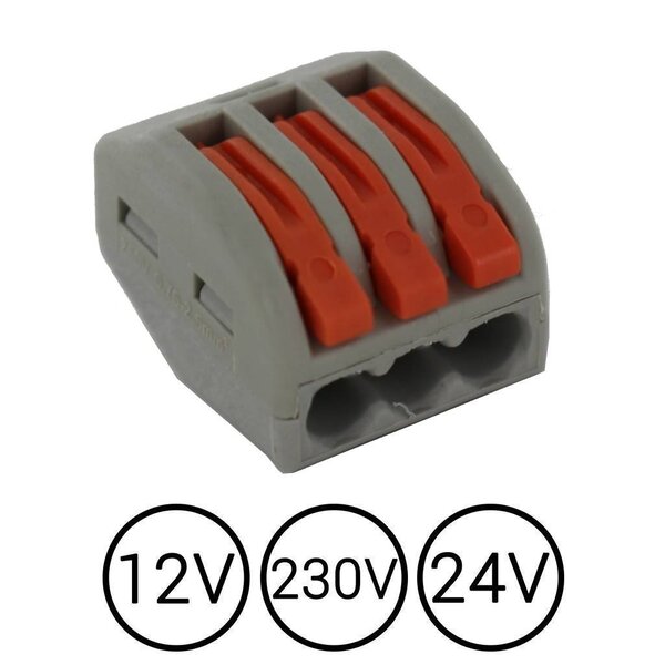 Verbind 3 stroomdraden met deze handige Wago verbindingsklem.