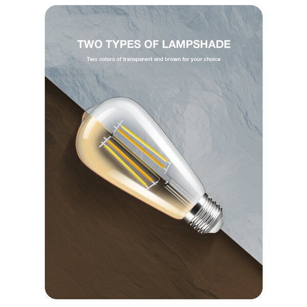 De ST64 lamp is beschikbaar in 2 verschillende glas kleuren. De E27 lamp met amber gekleurd glas heeft een mooi retro look design. Daarbij valt de warme kleur van 2200K wat warmer uit voor nog meer sfeer. Het koudwitte licht zal hierdoor ook wat minder koud uitvallen.