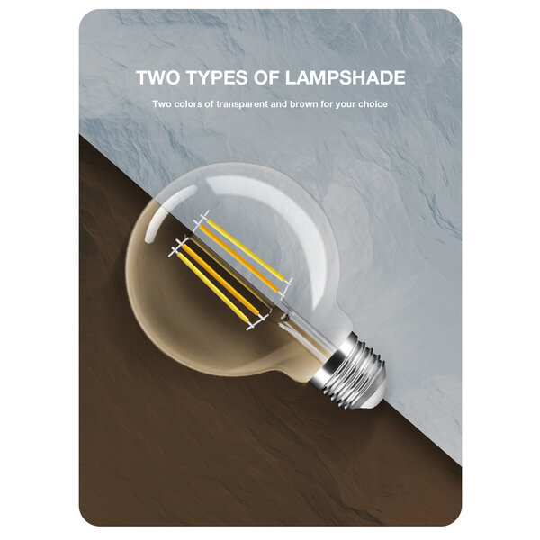 De G95 LEDlamp is beschikbaar in 2 verschillende glas kleuren. De E27 lamp met amber gekleurd glas heeft een mooi retro look design. Daarbij valt de warme kleur van 2200K wat warmer uit voor nog meer sfeer. Het koudwitte licht zal hierdoor ook wat minder koud uitvallen.