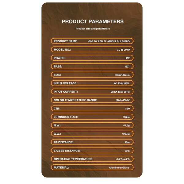 GLEDOPTO Zigbee 3.0 E27 CCT 2200K ~ 6500K LED Filament Lamp 7 Watt G95
