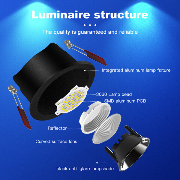 Met een zwart ontwerp en SMD2835 witte LEDs en SMD3030 RGB LEDs, biedt deze downlight een breed scala aan verlichtingsopties. U kunt de kleurtemperatuur aanpassen tussen 2200-6500K en de helderheid afstemmen op uw stemming of behoefte.