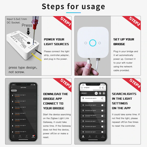 Deze Zigbee 3.0 ledstrip controller is te koppelen met onder andere Philips Hue*, SmartThings, Apple HomeKit en Google Assistant. Ook is het mogelijk om deze te bedienen met Ikea Trådfri, Osram Lightify en Amazon Echo. Via uw huidige smarthome app koppelt u deze eenvoudig aan uw bestaande lampen. Niet alle functies in de app van Philips worden ondersteund.